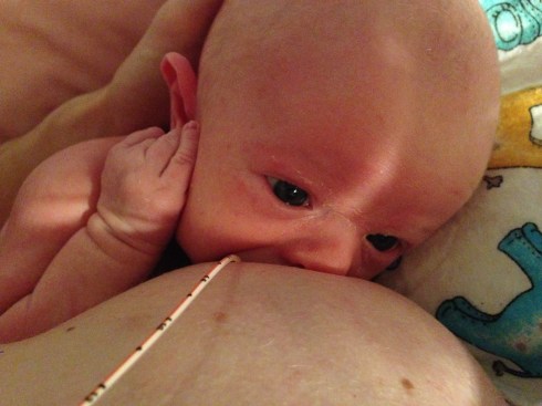 August 30, 2014 – Todd using the SNS tube while breastfeeding