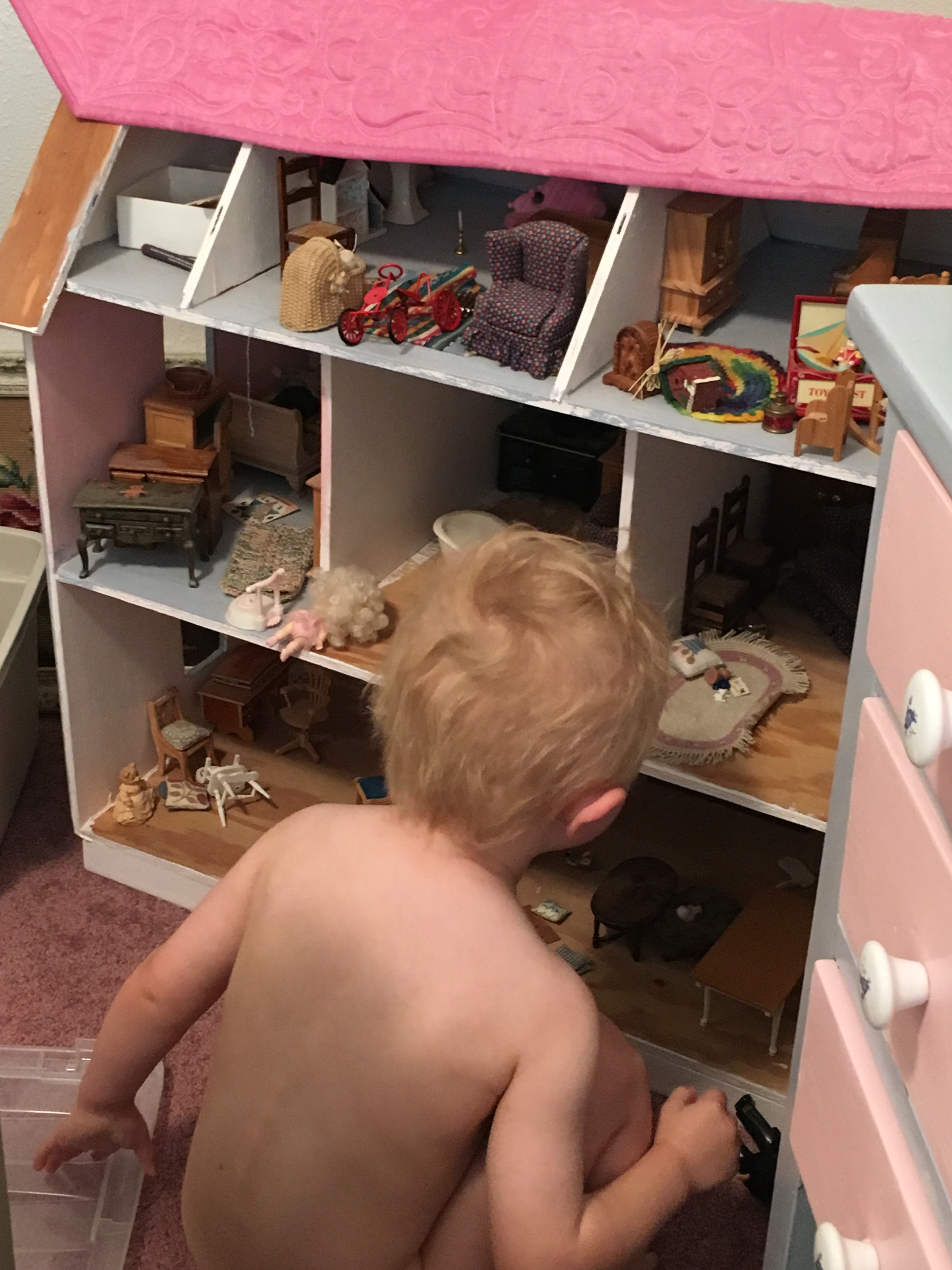 Playing with Grammie’s dollhouse – August 12, 2017