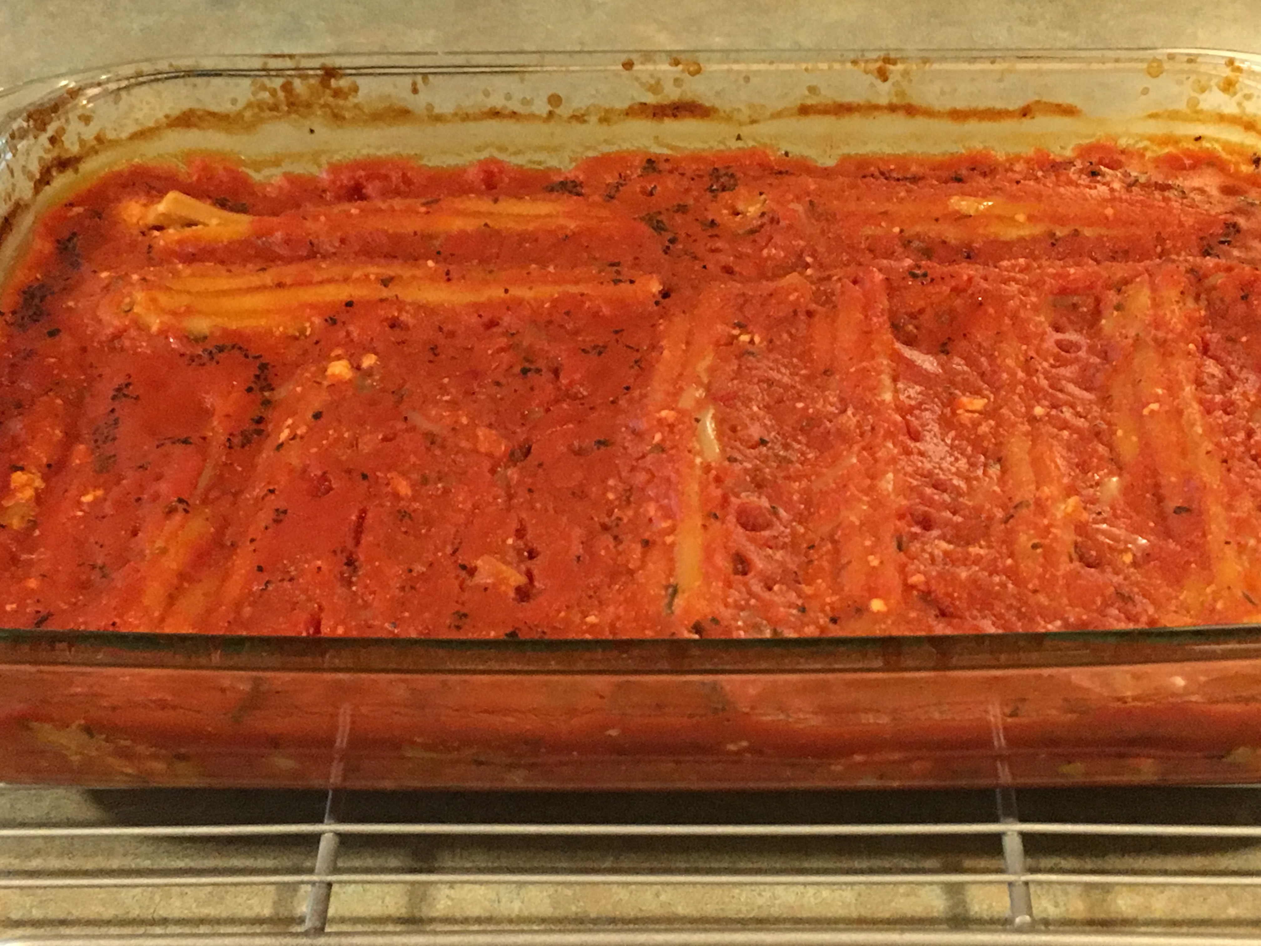 Vegan manicotti, after baking