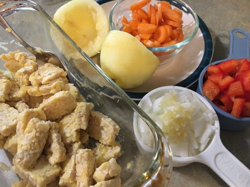 Tempeh soaked in lemon zest/juice and the chopped veggies
